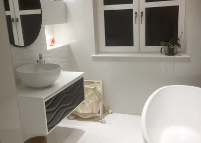 As well as bathroom fitters, as part of our service we offer tiling, electrical, glass splash back, lighting etc